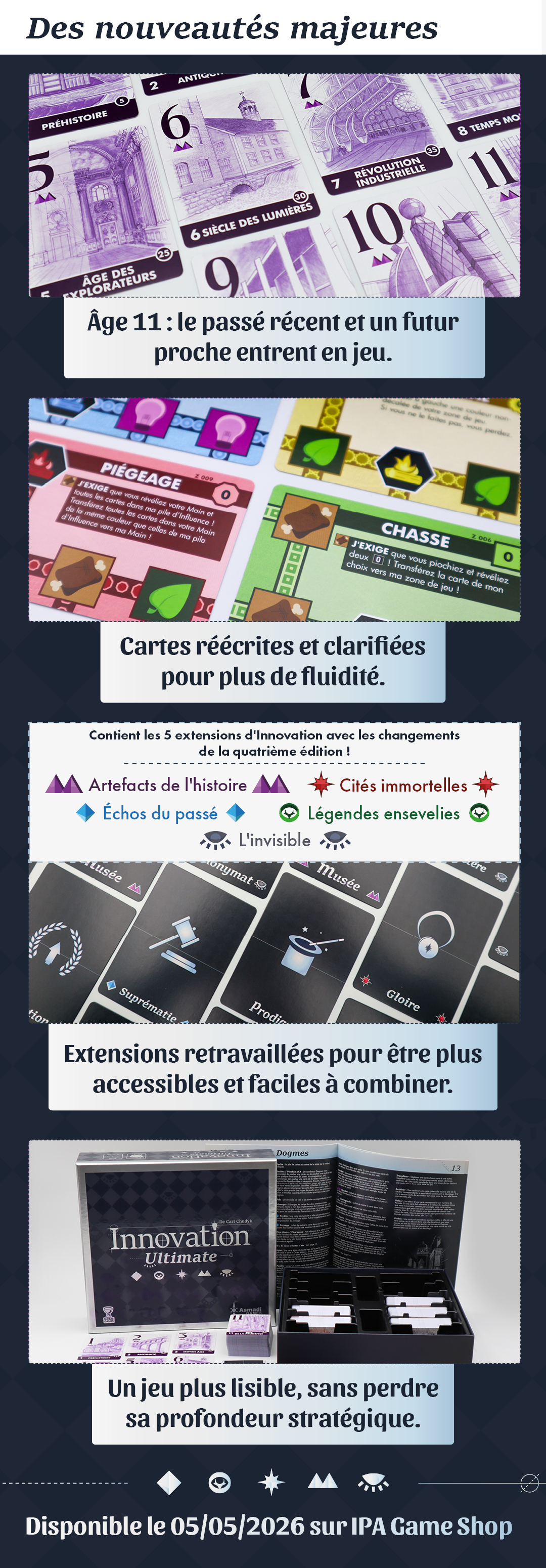 Non au-delà de tout regrouper dans une seule boîte, l’édition Ultimate contient des mises à jour de règles, un nouvel âge, et une extension inédite, ce qui en fait une version enrichie et repensée du jeu original.